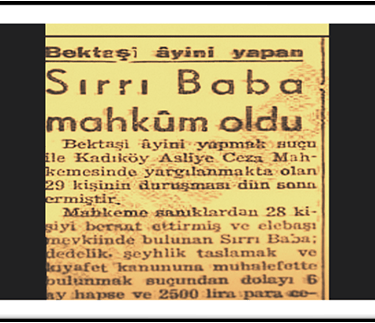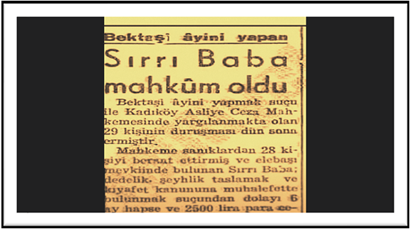 O dönemde İstanbul'a gelen bu dedebaba Bektaşi kıyafetleriyle beraber müritleriyle İstanbul sokaklarında boy göstermişti. Tabii ki, büyük tepkilere yol açmıştı. 4 Ekim 1952 günü Merdiven Köy’de şair sokak NO: 12'de bahçıvan Vehbi'nin evinde birinci şube İstanbul Emniyet birimlerince gece yarısına yakın ani baskın düzenlendi bu eve. Bahçıvan Vehbi'nin evinde 18 erkek 12 kadın Dedebabayla derdest edilip tutuklanırlar. Yargı süreçleri başlar. Tekke ve zaviyeler kanununa aykırı ayin yapmak suçuyla. Dedebaba ve tutuklananlar savunmalarında bir nişan töreni yaptıklarını iddia etseler de Dedebaba 6 ay hapis ve sürgün para cezasıyla cezalandırılmıştı. Dönemin gazeteleri bu haberlerle çalkanıyordu.