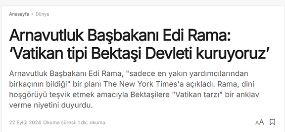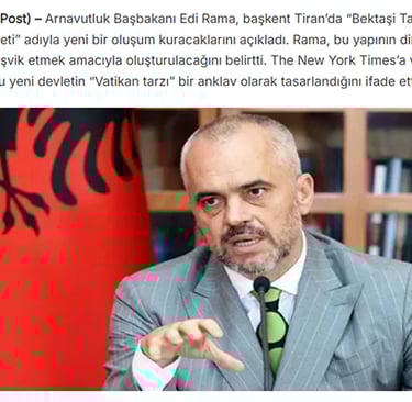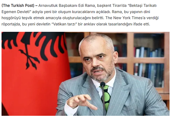 Tekrar konuya dönelim; Arnavutluk’ta kurulması ilan edilen Bektaşi Devleti tamamıyla ABD projesidir. Nasıl 1826 sonrası Osmanlı Devletine karşı Arnavutluk’ta ayaklanma faaliyetlerinde bulundularsa bir benzeri hiç şüphesiz Türkiye Cumhuriyeti Devleti aleyhtarı faaliyetlerden kaçınmayacaklardır. Yazının başında belirttiğim gibi Bektaşiliğin Dünya’da tek bir merkezi vardır. Anadolu’nun Pir-i Hünkar Hacı Bektaş Veli Dergahının ana çerahının bulunduğu Türkiye’dir. Şimdi buna alternatif bir merkez Arnavutluk’ta kurarak Türkiye’nin elinden bu değer alınmak istenmektedir. Bu ikilik Türk topraklarında inançlar arası ayrışmayı körükleyecek Bektaşiler arasında dahi olası bir kaosla olası bir iç savaş olasılığını güçlendirecektir.