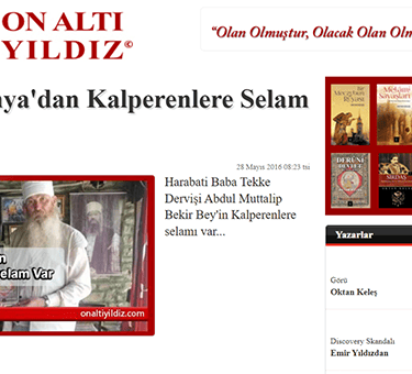 28 Mayıs 2016 tarihinde ONALTIYILDIZ.COM haber sitemizde kendileri konu olmuşlardı. Yazmış olduğum “DERUNİ DEVLET KUTSAL HALI” kitabımla selamlar göndermişlerdi.
