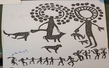 Petroglifteki hayvan çizimlerin yönü manidardır.Kün, Enerji alandan; Ay,Madde alanına doğru.B alanındaki enerji formlarından maddeleşecekleri A alanına doğru.Enerjinin frekansının ve hızının düşüp maddeleşmesi. E = m . c2