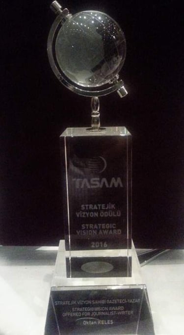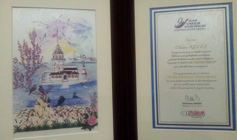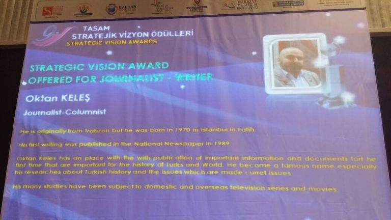 Oktan Keleş Türk Asya Stratejik Araştırmalar Merkezi TASAM tarafından yılın vizyon sahibi gazeteci-yazar ödülünü aldı.
